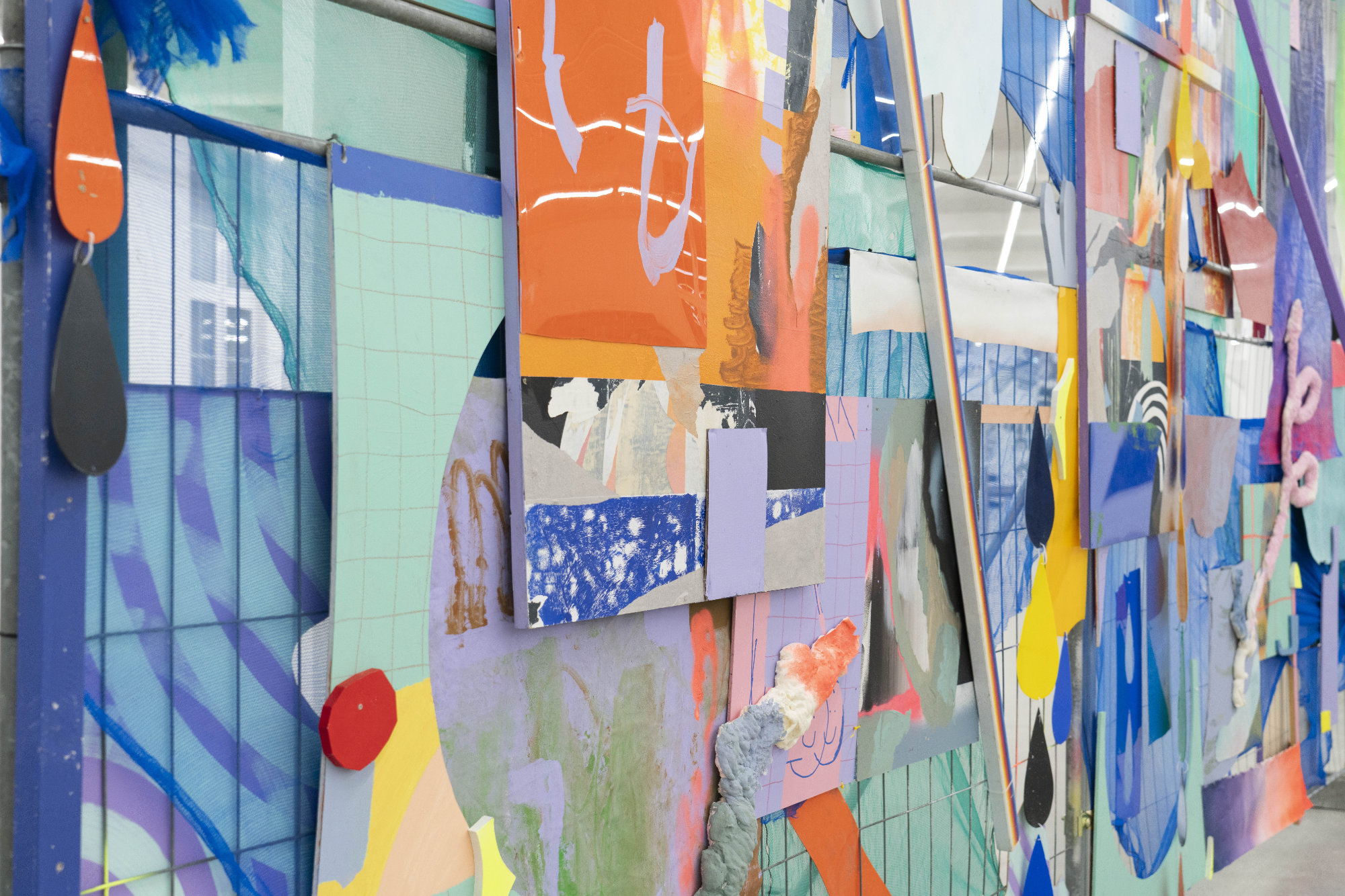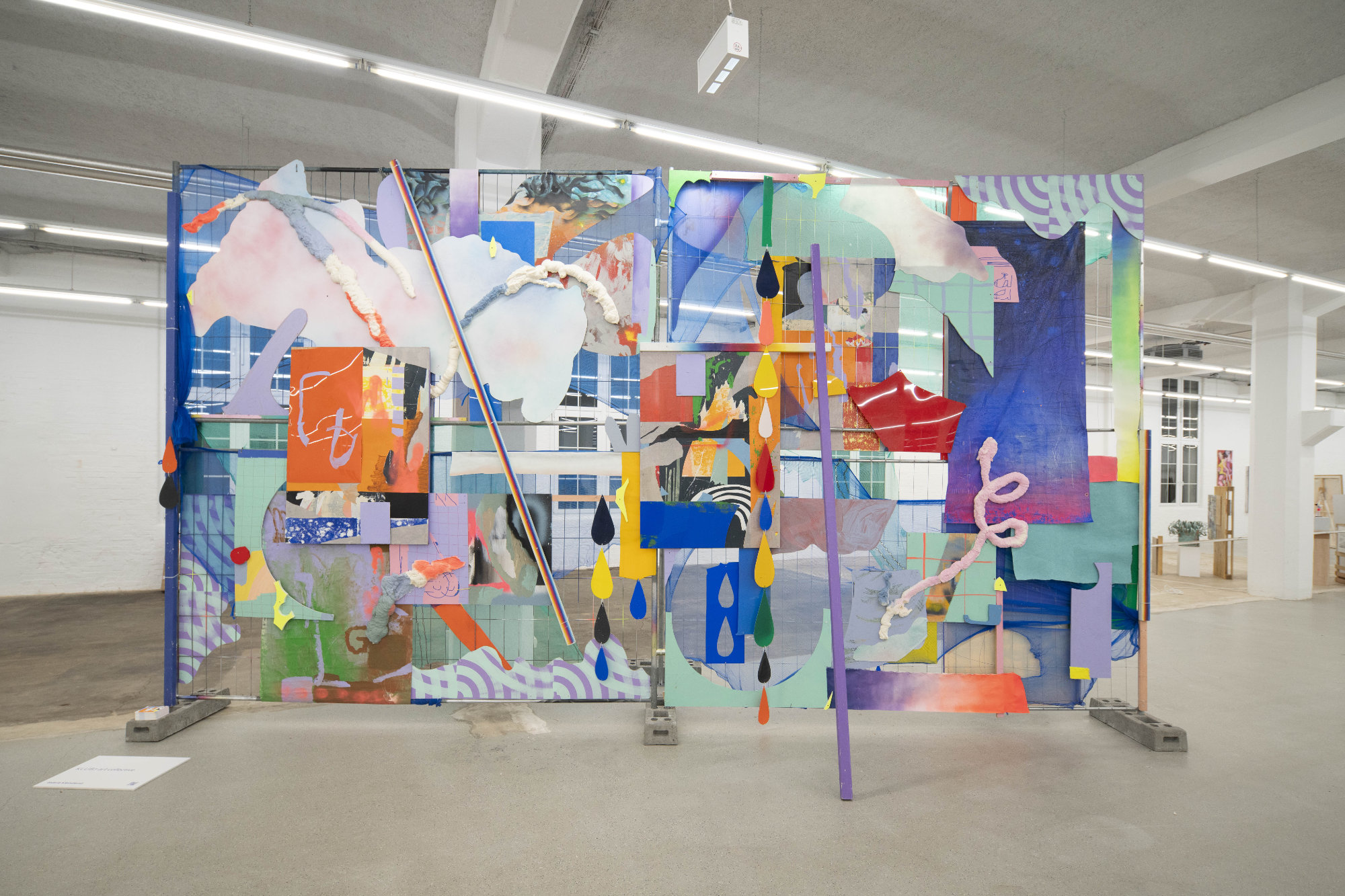 For the Leipzig Spinnerei Galleries’ exhibition at the Wirkbau Chemnitz during the 2025 European Capital of Culture program, we created a site-specific installation. The 7×4m assemblage was composed of four studio-prepared elements, joined and further developed on site. Layering, openings, and material densities generate depth and movement. The work reflects transformation at a site in flux.